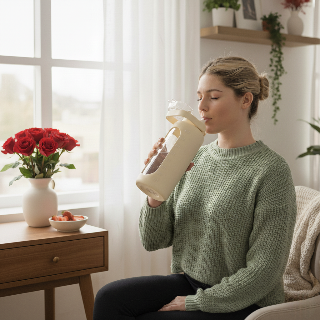 Day’s end, body fully hydrated, mind soft and steady. One last slow sip as the light fades and the evening begins.